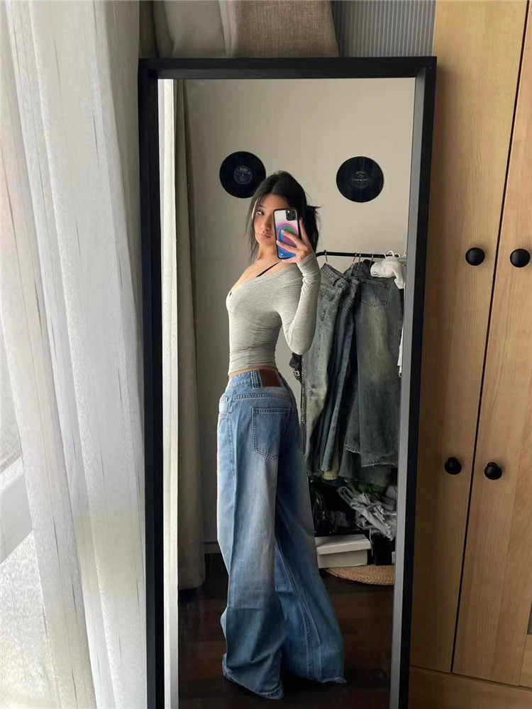 Herbst Winter Damen Low Rise Vintage Denim Hosen Y2K