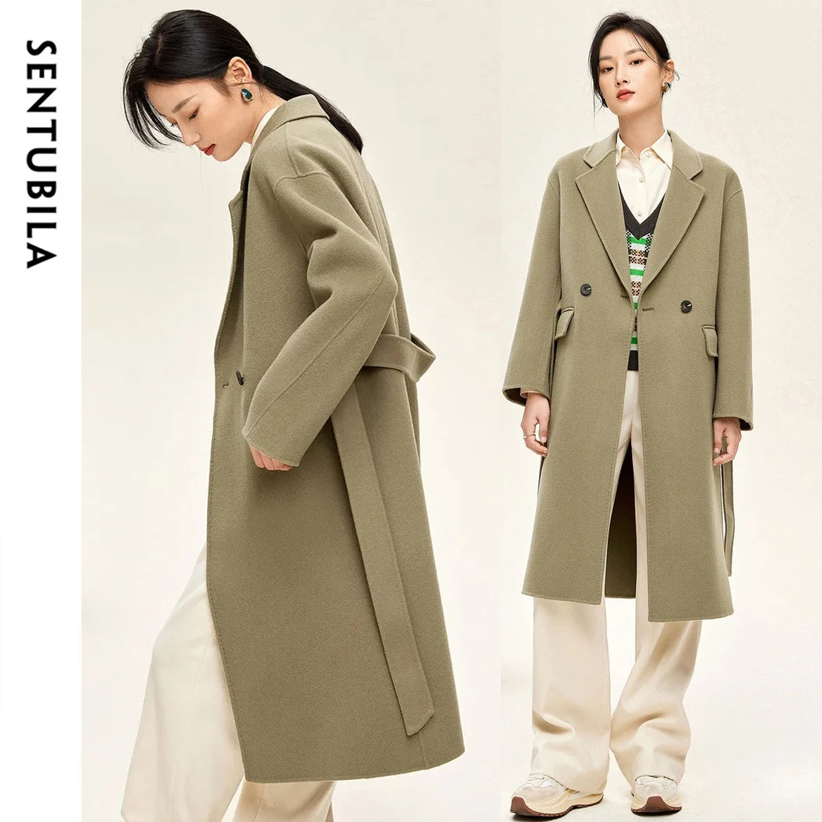 SENTUBILA Langer Mantel aus 100 % Wolle für Damen, 2025, Winter,